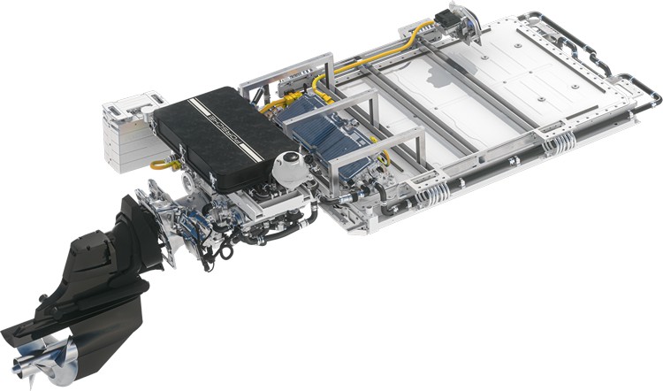 全新 Frauscher x Porsche 850 Fantom 擁有 8.67 公尺的修長船身和 2.49 公尺的寬敞空間,搭載源自 Porsche Macan Turbo 的純電動力系統,保時捷將 Macan Turbo 後軸的永磁同步馬達移植到遊艇上,最高可輸出 400 kW 的強悍動力,並透過 Z 型傳動裝置直接控制。控制單元置於印有Porsche標誌的防水盒中,確保其安全可靠的運作。透過先進的電力電子設備,馬達的效率獲得強化;而脈衝逆變器中的碳化矽元件,則實現更高的切換頻率,展現保時捷在電動科技領域的領先地位。此外,eFantom 搭載同樣源自 Macan的總容量 100 kWh 高電壓電池,可提供充沛的電力,滿足水上探險的需求。而精密的鋼索懸吊系統,則能有效吸收高速行駛和波浪造成的衝擊,確保航行的穩定性和舒適性。
