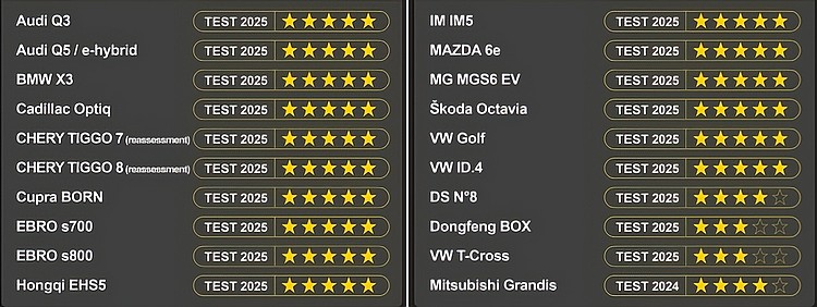 這次的測試中,有多款採用相同平台的Volkswagen集團車款送測,除了Audi Q3是首次測試,其餘像是Škoda Octavia、Volkswagen Golf、ID.4和T-Cross都是重新送測,原因是為了搶在Euro NCAP的2026年新制實施前,取得2025年協議標準的成績。結果幾乎所有車款都取得五顆星,唯獨T-Cross卻是只獲得三顆星的結果,令人驚訝。 接受測試的T-Cross是1.0L TSI動力車型,前方偏撞測試對於成人駕駛者的保護評價為「弱」,對於後座兒童頸部和頭部的保護評價都只有「及格邊緣」,而全面撞擊測試對於後座成人乘客胸部的保護評價也是「及格邊緣」。由於在「弱勢用路者保護」及「安全輔助系統」兩大項目得分過低,最後只能得到三顆星。