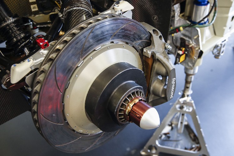 ![]() ▲保時捷 911 RSR 72號賽車。煞車踩得晚的人能跑得更快更持久:這是保時捷為911 RSR開發煞車系統時的不敗金律。在利曼24小時耐力賽,每圈將有13次機會讓煞車系統發揮效用。當車手們衝向狹窄的彎道時,例如:著名的穆桑直道(Mulsanne straight)的兩大減速彎,或是進到穆桑彎道時,必須一次又一次地重踩煞車。整場比賽中,共須踩下約4,000次煞車踏板。 ![]() ▲保時捷 911 RSR剎車系統。