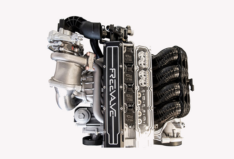 Freevalve無凸輪軸技術則是宣稱,它能完全擺脫受制於固定凸輪形狀導致的兩難;它拿掉了所有的凸輪軸,每組汽門都改換上一種稱為Pneumatic Hydraulic Electric Actuators(PHEA)的氣動液壓複合執行器,以氣動提供作動力量、液壓用於阻尼和鎖定閥門位置,電動作為控制氣動和液壓組件,並監測閥門運動。透過閥門控制系統,發送電訊號精準控制每個閥門的開啟、保持和關閉,達到完全可變閥門時程,讓汽門的揚程、持續時間、重疊時間擁有無限調整的可能,引擎因此在所有轉速域下都都擁有最完美輸出與反應,還不會增加廢氣排放量。