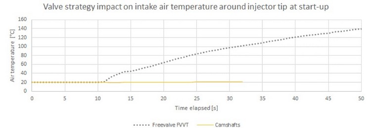 ▲對比傳統引擎的沒有作為,Freevalve系統在引擎冷啟動階段可進行預加溫,以極短時間為進氣加溫,讓啟動過程更順利,也大幅改善低溫環境的燃燒效率。