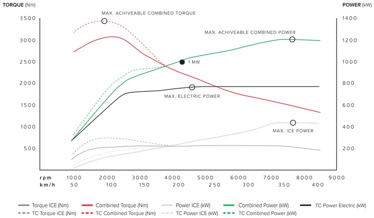 Gemera油電超跑上面,在2020年公開的原型車,搭載的就是2.0升三缸雙渦輪增壓引擎、三組馬達和單檔變速箱的動力配置,一舉創造出1700hp的綜效馬力,只要20秒就能完成0-400km/h的加速過程。