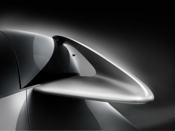 ![]() 例如,從車頂後方二側的二片翼狀設計就非常地獨特大膽,車門向後上方類似鍘刀的開啟方式同樣相當前衛。雖然全車科技感十足,但是在空氣力學設計上卻有相當程度地參考了SAAB於1946年所推出的第一號作品「92001(Ursaab)」,空氣阻力係數Cd值只有0.25,相當難得。