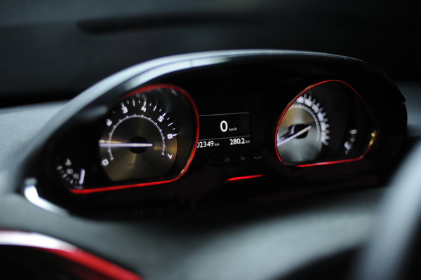 ![]() GTi一身暗紅車色,並以燻黑處理呈現出微妙的光影變化,C柱上還有鑲嵌鋁合金的GTi的徽飾飾板,很有重現PEUGEOT經典名車「205GTi」的味道。當然,既然走運動路線,動力部分自然更是目光焦點。搭載著從RCZ跑車所移植而來的1.6升燃油直噴直列四缸汽油引擎,可輸出200匹最大馬力與28公斤米最大扭力,搭配六速手排變速箱。車子前後輪距均增加36mm,有著醒目紅色卡鉗的大盤徑煞車系統前後盤徑分別為前:302mm、後:249mm。