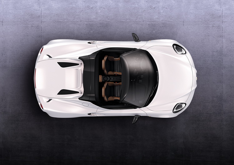 ![]() 既然是敞篷車,可開啟的車頂會使用何種形式就成了關心的重點。考量到4C(Coupe版)是部車重只有895公斤,講求輕量化的小跑車,所以Spider選擇採用軟頂篷也就相當合理。整個軟頂篷機構加下去,重量也不過比Coupe版增加60公斤左右。