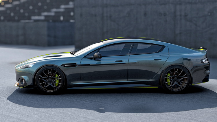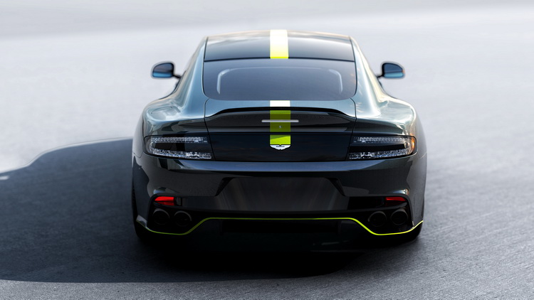 在新品牌成立後首波帶來的兩部車款之中,Rapide AMR不論在造型視覺或性能動感上都可說是未來AMR車款的藍圖標準。搭載最大馬力達600匹的6.0升V12自然進氣汽油引擎與新的左右雙出排氣系統,其極速可達210MPH。21吋鋁圈與包括後擾流尾翼在內的全套空力套件也都讓它更為霸氣外顯。而在車室內,碳纖維材質製成輕量化前座椅以深色Alcantara真皮搭配萊姆綠飾條,同樣以碳纖維材質鋪飾的中控台也更顯出車廠豪華精巧的造車工藝。