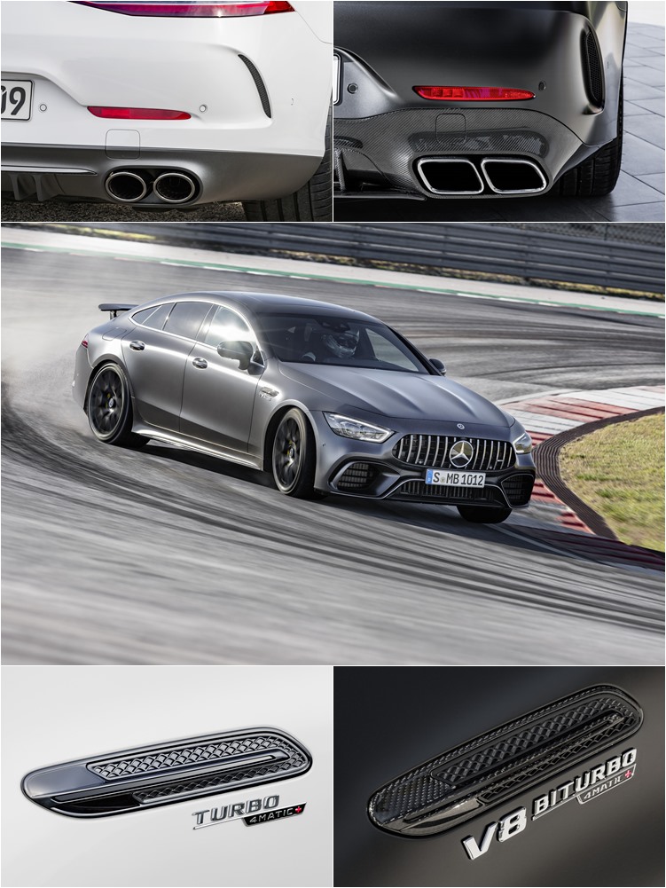 ![]() ▲Mercedes-AMG在日內瓦車展正式推出GT四門四座車型,為GT家族再添生力軍。四門AMG GT外觀比例同樣擁有AMG GT家族一貫的長車頭、短車尾與誇張輪拱等經典跑車特徵,同樣配置了跑車系列專屬的直列水箱格柵,兩側巨大氣壩與引擎蓋明顯的兩道摺痕也是車迷熟悉的元素。而在 AMG GT R所配置的主動式格柵葉片調整機能,也下放到四門車款上,這套功能可透過控制進氣風量適時達到調節冷卻或風阻的效應。 ![]() ▲全車系都標配AMG Performance 4MATIC+全輪傳動設計,S版並且特地為喜愛甩尾的駕駛保留了100%後輪傳動的Drift Mode,依照六缸或八缸車型的不同,在配備上有顯著的差異。
