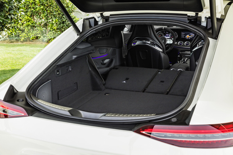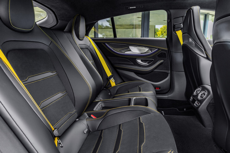 ![]() ▲內裝設計與雙門AMG GT有不小差異,中控台操控面板的改變尤其顯著。內裝格局上,前座駕駛艙布局與雙門AMG GT車型有很大不同,中央顯示幕由獨立立式改為傳統埋嵌型式,車門板設計也截然不同,整體風格更近似轎車。渦輪葉片式出風口則整合於碳纖斜紋飾板內,然而最明顯的差異則在於排檔鞍座的操控設計,取消過往的旋鈕或按鍵,而以觸控為主大幅簡化操作面板。高階車型還會換上雙顯示幕並排組成的超寬全數位儀錶,並配備麂皮包覆的碳纖方向盤,座椅型式也有所不同。 ![]() ▲高階車型的雙獨立後座跑車座椅,提供更好的支撐與包覆效果。![]() ▲GT車型對於長途旅行有更多的要求,因此載物機能設計相當重要。![]() ▲六缸車型在後座安排上較為人性化,除了提供中央扶手,座椅設計也較偏向於舒適。![]() ▲四門後座讓熱血買家多了一個說服家人買車的好理由。