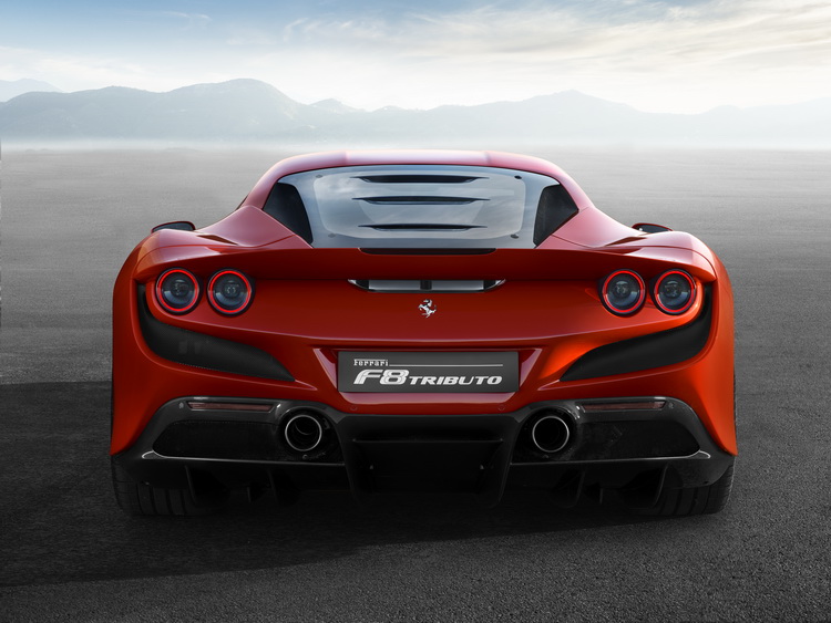 車尾採用了Lexan新開發的後擋風玻璃,讓人在車外可以清楚地看見引擎室內,這也是將FERRARI歷史上的V8象徵車款「F40」身上的一大特徵設計用比較現代化的手法來呈現。後擋上的百葉設計則可以增加車尾下壓力,並且在不對車尾導氣尾翼產生不良影響的前提下有效率地排出引擎室內的熱氣。