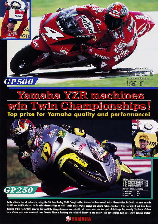 ![]() ▲看著阿部典史的身影讓人無限懷念。為了慶祝這參賽50週年,YAMAHA也推出不少活動,並建構了專屬的網站通車迷瀏覽。裡面除了詳細的講述YAMAHA 50年來的參賽史之外,對於車手的資料以及賽車資訊也都有詳盡圖文資料。而裡面也同時提供不少珍貴的照片供車迷下載,如已逝的日籍車手阿部典史或是已經轉隊的羅馬皇帝Max Biaggi或Rossi也自當在YAMAHA 50年的賽道史留下無可抹滅的一頁。網址為: