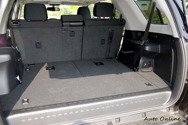 想要進出4RUNNER的第三排座椅並不困難,只消轉動第二排座椅側邊的把手,即可讓第二排座椅椅墊前滑椅背前傾,形成一進出第三排座椅的通道,在後車門門檻處,4RUNNER還設有一墊高的踏腳處,用以便利進出第三排座椅的踩踏。若要移出4RUNNER的第三排座椅,只要拉動藏在第二排座椅下的拉把,即可讓第二排座椅前傾、前滑,進出真的不困難。