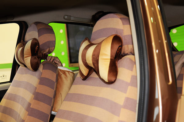 M'car的熊造型這次又以浣熊面貌問世,除了前文提及的招牌眼圈、白色鼻頭、白色後視鏡、俏皮車尾巴,在內裝方面,浣熊版以擬真尾巴條紋設計特製柔軟椅套及後躺頸枕,搭配森林色系真皮方向盤,為整體空間塑造出獨一無二的童話氛圍。