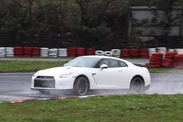 縱使今天的天空飄著雨絲,路上吹著刺骨的寒風,不過這一切都無法阻擋全民賽車場上的熱血澎湃,因為在此時此地,NISSAN正式宣佈更快更強的2013年式NISSAN GT-R在台上市。濕滑的賽道讓545匹馬力、600萬身價的GT-R不時必須反打方向盤修正路線,不過在場媒體沒有一個人質疑場上試車手的能耐,因為這位試車手正是駕馭GT-R在紐柏林賽道創下7分20秒新紀錄的日產首席試車手鈴木利男!