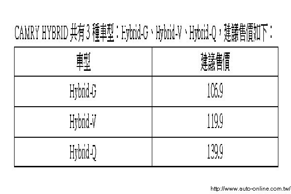 ![]() CAMRY HYBRID除了為台灣首部國產的油電複合動力車款之外,更是證明國瑞汽車卓越領先的車輛製造技術及和泰汽車實現環境及社會公民責任的最佳表徵。國瑞汽車是國內第一家生產油電複合動力車的汽車廠,也是在日本之外全球第六個油電複合動力車的海外生產基地,所代表的意義是台灣汽車工業邁向先進節能科技的新里程碑。