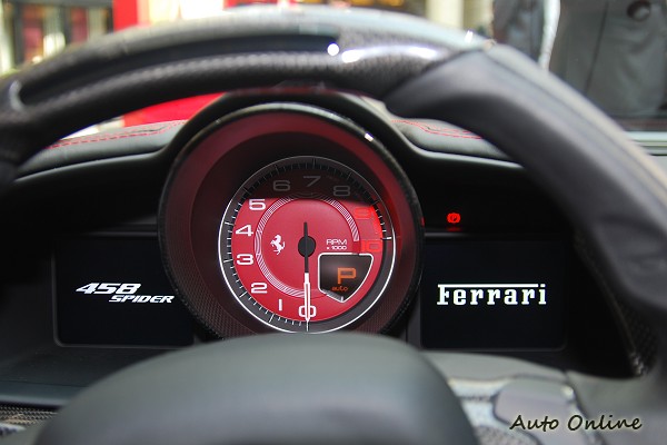![]() 458 Spider採用Ferrari法拉利自然進氣4.5升8缸直噴引擎,該引擎因其在駕駛性、性能、燃油經濟性以及精密度方面的卓越表現而榮膺2011年國際引擎大獎(2011 International Engine of the Year)。配合性能一流的Ferrari法拉利雙離合器F1撥片換檔式變速箱,可實現最佳動力,458 Spider 從0到100 km/h只需3.4秒,最高時速可達320 km/h。