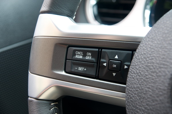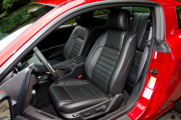 內裝在設計上仍然保持復古風,中控台、排檔座、前方控台等線條都偏方正硬調,不過配備上卻完全跟上最新的科技潮流。搭載4.2吋彩色液晶中央螢幕顯示多項行車資訊,或是與FORD自豪的SYNC多媒體通訊影音娛樂系統相整合作為影音通訊的顯示介面,並透過方向盤上的按鍵即可操作其中功能。 ![]() ▲方正剛硬的內裝布局頗有復古風情