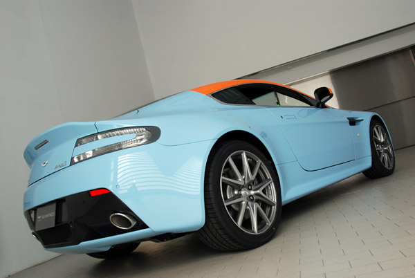一部由永三汽車代理進口的客製化「Gulf Livery」海灣石油車隊特殊塗裝ASTON MARTIN V8 Vantage S,預定在今天交車,成為國內唯一使用這種配色的V8 Vantage S車款。車主除選擇以Gulf Blue淺藍與水箱護罩周圍的亮橘作為搭配,車內座椅也換裝為碳纖維一體成型桶型賽車椅,雖然車價因此由原本的938萬增加至將近1200萬,不過換來的是十足的賽車駕馭感受,在道路上寫意奔馳將成為眾人矚目的時尚焦點。