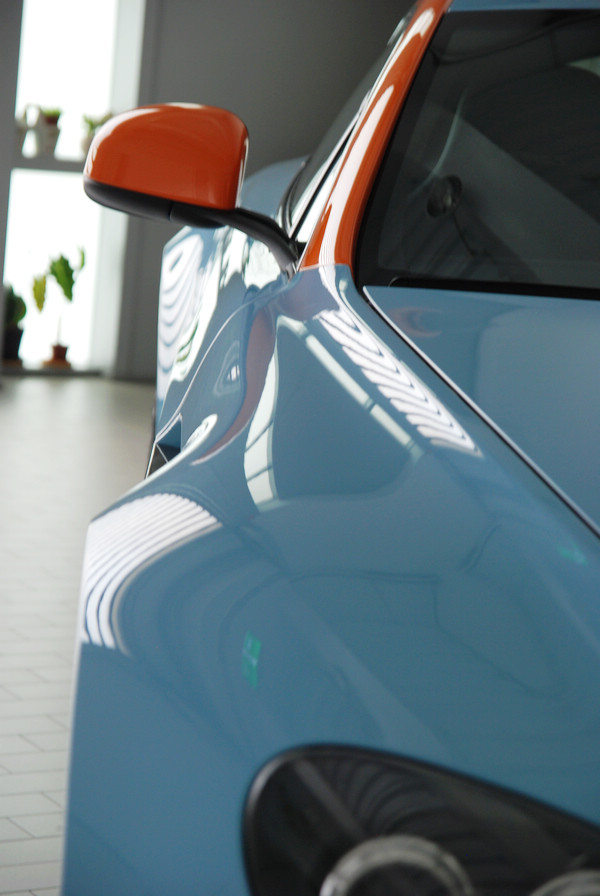 ![]() ▲使用淺藍和亮橘搭配的車色,今後將可在街頭輕易辨識出這部ASTON MARTIN Vantage S。
