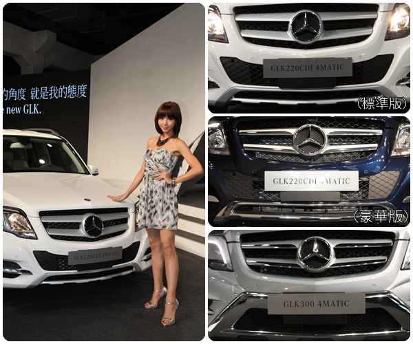 M-BENZ GLK小改款新車已於9/14在台上市!以都會時尚多功能休旅車為訴求的GLK,總代理台灣賓士共引進兩種動力車型,分別為柴油GLK 220 CDI與汽油GLK 300,兩款皆搭載4MATIC全時四輪傳動系統與七速手自排變速箱,其中GLK 220 CDI還推出兩種配備等級,主要差異在於外觀鍍鉻配件與音響等級的不同。售價方面,GLK 220 CDI標準版230萬/豪華版255萬、GLK 300則為279萬。