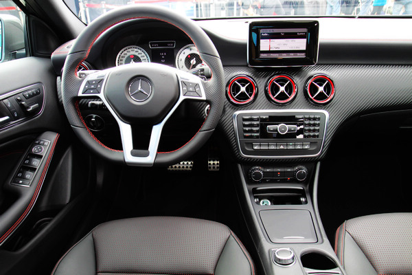 內裝設計也是A-Class具備時尚本色的緣由,皮質座椅列為 A180 Style及A200 CDI Urban標配,採用ARTICO人造皮質;A250 Sport則添加DINAMICA纖維織布搭配,打造包覆性十足的動感座椅。多功能 NAPPA 真皮方向盤,讓駕駛人隨時掌握車輛資訊數據與多媒體操控。中控台上嵌入 5.8 吋彩色顯示幕,現可利用中央扶手內的USB連接埠,與智慧型手機連結,無論是傳統CD播放,或是手機儲存的 MP3/WMA/AAC 音樂檔案都可輕鬆隨選隨聽。後行李廂容量341公升,並具備60/40 分離椅背調整功能能將容量一舉擴充至 1157 公升。