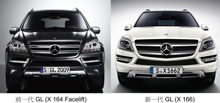 GL-Class是在2006年以M-Class底盤架構所衍生而出,融合M-Class 及G-Class 的設計元素,搭配豐富的內外裝配備而成為賓士SUV家族之中的旗艦車款。全新GL-Class(X165)車體明顯變大(高+10mm/寬+14mm/長+21mm)之後,車重竟較前一代(X164)減輕,主要來自於車體設計大量採用鋁合金及輕量化合金,包括引擎蓋、部分車身與底盤結構,其它如新式的多層擋風玻璃、鎂合金支架等…都有效降低重量負擔並提昇油耗表現。