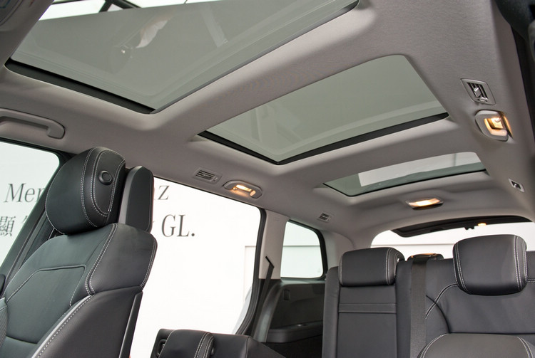 ▲全新GL-Class標準配備全景式電動玻璃天窗,天窗設計改為三排三片式,令車室內每一排乘客皆可享有仰視觀景福利。