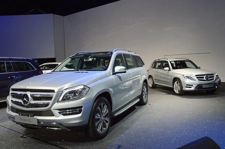 ▲與身後的GLK這款「Baby GL」比起來,GL的全尺碼車身令它坐擁極為寬敞的車艙空間水準,足以輕鬆坐進七位成人,而GLK則很適合追求都會時尚生活方式的「小康家庭」買家。