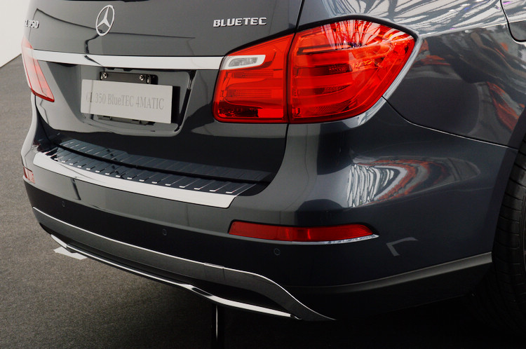 新改款GL車尾線條設計則更為流暢和諧,採取兩片式LED光纖尾燈,車尾頂端並附大型擾流造型以強化視覺感度;後保桿則採翼狀設計,同時附有整合式鍍鉻行李廂柵門檻護板。有別於前一代設計的大型鍍鉻外觀下護板,本代車型以嶄新造型增添動感氣息,再輔以20吋10輻輕合金輪圈,完整呈現頂尖休旅的極致奢華風範。