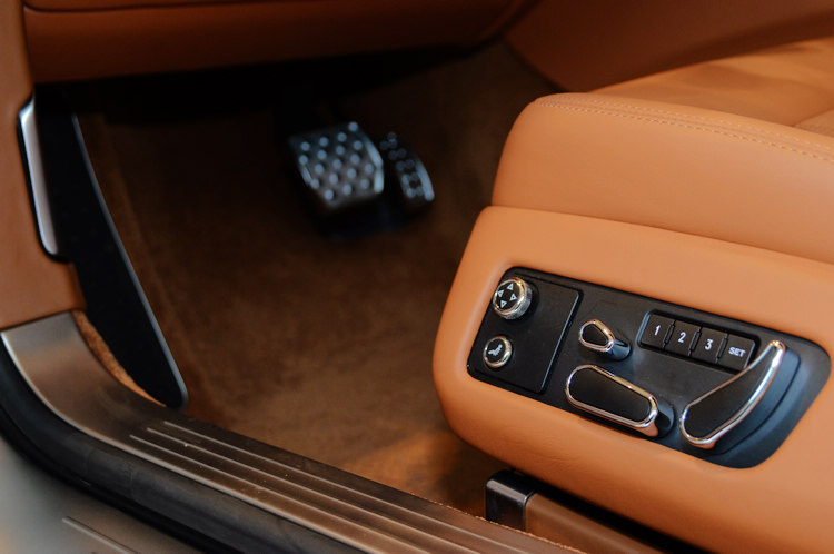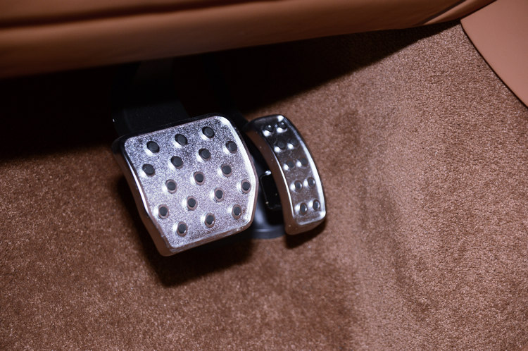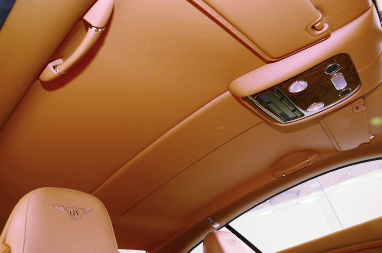 ![]() Continental GT Speed標配21吋10輻雙肋輪圈,標配為燻黑水箱護罩、與黑化前氣壩,不過在展間的這款車,買家特別選擇鍍鉻處理的水箱護照與氣壩,將GT Speed車型專屬的性能表徵隱藏起來。在車尾方面,GT Speed也將雙邊四出尾管加上專屬的砲管膛線雙出尾飾管,至於車內特有的套件,則包括跑車化鑽孔腳踏板、寶石級加工金屬油箱蓋、迎賓飾板、特殊壓紋處理的排檔頭、以及座椅和車門板的英式菱格紋皮革等,將鮮明個性與當代豪華元素完美融合。