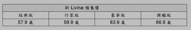 ![]() 這次Livina小改款,車系編成分為經典版、行家版、豪華版、旗艦版等四種規格,預售期間下訂之車主,預售價格與實際上市價格若有差異可享多退少不補優惠。