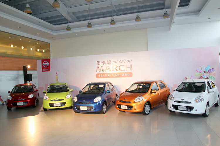 裕隆日產汽車推出2014年式NISSAN MARCH嶄新「寶石藍」車色,全車系共有8種如同法式甜品馬卡龍的繽紛亮眼外型,2014年式MARCH全車系標配舒適透氣皮椅,限量80台豪華版配備智慧行車安全顯示器及馬卡龍繽紛套件,超值甜美價新台幣49.8萬元起,購車即享浪漫貴婦下午茶及馬卡龍紓壓抱枕,並有機會抽中巴黎來回雙人機票,更可搭配首年日付80元,等同日付一顆馬卡龍的高額分期優惠專案。