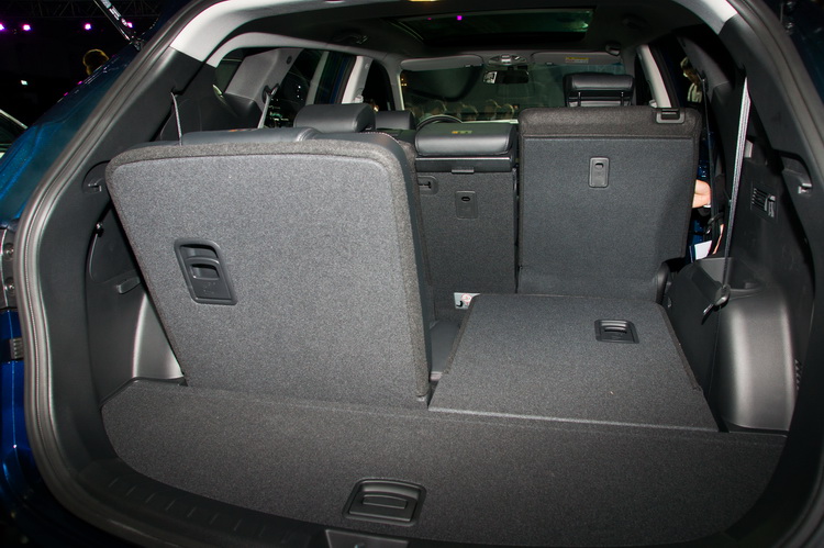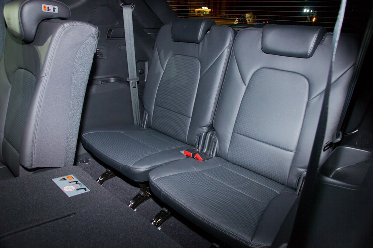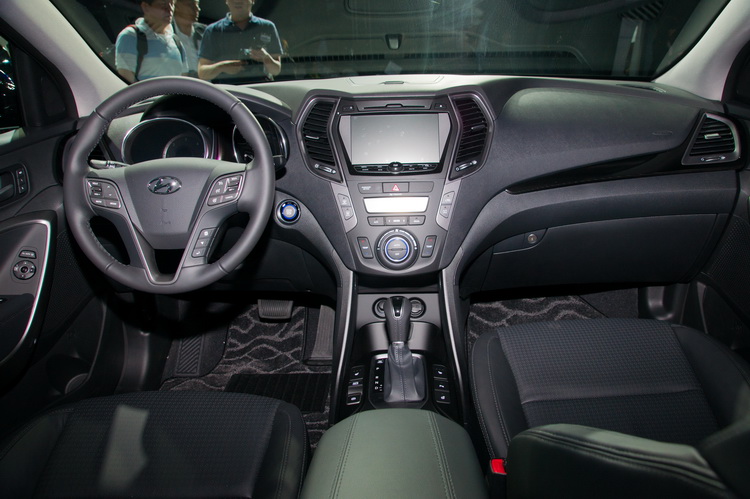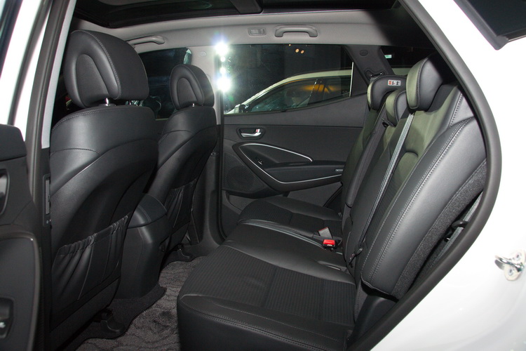 新Santa Fe在內裝採用皮質、金屬、類碳纖維,以及類PRADA皮革塑料鋪陳,打造旗艦級多層次內裝感受。2,700 mm的軸距加上比前一代SANTA FE長40MM的車長,營造出更大的車室空間,更由於第二排座椅具有前後滑移的功能,讓整體車室空間更具靈活運用。 Santa Fe配備進口LSUV等級無中柱設計之大型全景玻璃天窗,較一般國產SUV擁有更為寬闊的視野和採光,給予更為奢華高級感受。也是國產唯一提供七人座設定的大型SUV車款。