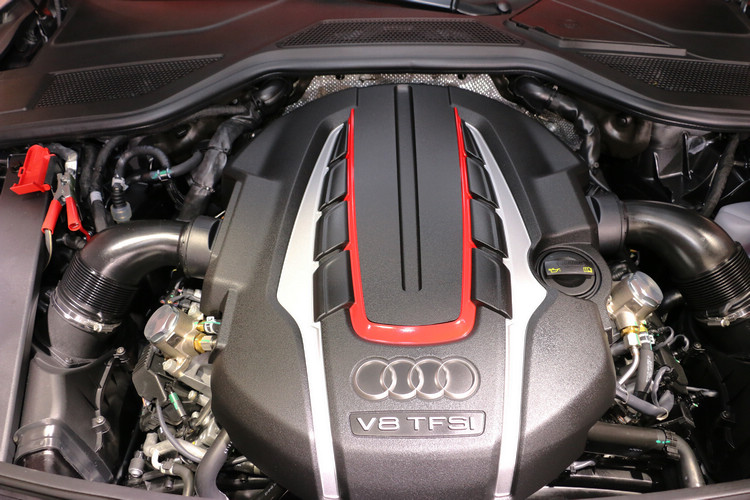 ![]() ▲S8內裝鋪陳出令人熱血沸騰的豪奢性能取向,跨進車艙內部立刻就能夠感受到內裝則標配專屬三輻真皮多功能跑車方向盤及大型換檔撥片、棕灰對比色縫線、舒適跑車型座椅、碳纖維銅絲或髮絲紋鋁合金飾版、1400W Bang & Olufsen Advanced音響系統含19支高傳真喇叭等。 ![]() ▲4.0升V8 TFSI雙渦輪增壓引擎,可爆發出520hp最大馬力和66.3kgm最大扭力輸出峰值。