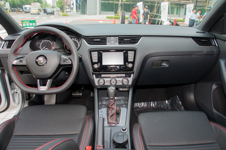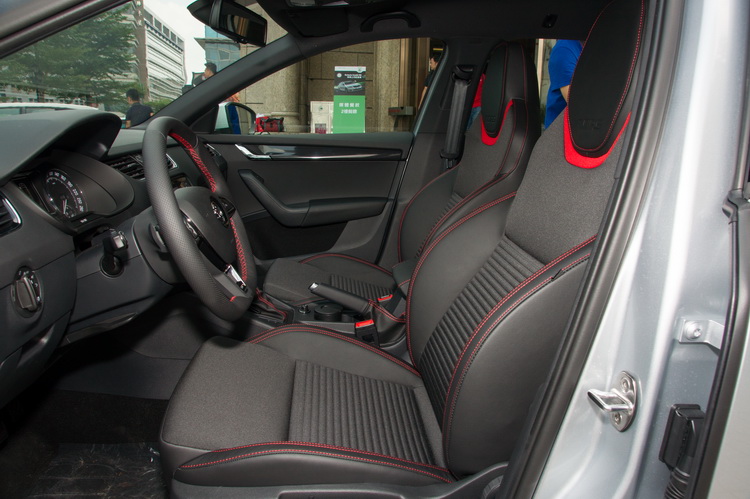 ![]() ŠKODA Octavia Combi RS車身由裡到外到處可見vRS專屬銘牌的點綴,鮮綠與鮮紅相間的「V」RS,「V」象徵ŠKODA在賽事上奪下無數獎牌的勝利意義(Victory),包含vRS專屬黑色水箱護罩、vRS專屬金屬門檻、vRS三幅跑車式真皮鍍鉻多功能方向盤並附換檔撥片、vRS專屬真皮方向排檔桿,還有vRS專屬油門及煞車金屬踏板,處處難掩賽車運動因子,彰顯ŠKODA在Motorsports上的傲視群倫。外觀更殺的是標配全新設計RS專屬18吋鋁圈附上紅色煞車卡鉗、AFS主動轉向氙氣頭燈,並且升級為燻黑魚眼造型,搭配LED日行燈,光是車頭就充滿嗆辣性能味。車內跑車化的座椅,利用紅色縫線好似在賽道上川流不息的熱血,前後座椅均印上vRS的專屬銘牌,增添性能跑旅的運動氛圍。