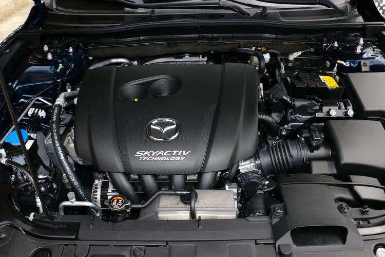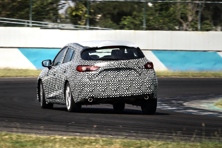 ![]() ▲認證車配備18吋輪胎,懸吊調校上並未刻意強調運動化。外觀雖有日方提供的偽裝貼紙包覆,但預期和前次展出的日規版車型不會巨大差異,仍維持MAZDA一貫的Kodo魂動設計語彙。至於本次提供試駕的掀背版採用的是18吋輪胎,不過由於B柱貼紙標明的是16吋,也可以預期未來上市後會因等級差異在這方面有所區隔。此外,試駕車頭燈為魚眼投射式設計搭配前後霧燈,不過尾燈及方向燈仍為一般燈泡而非LED,並採雙出尾管設計。 ![]() ▲認證車的偽裝貼紙據說也是日本原廠指定式樣,全車貼得密不透風,完全看不出原本的藍色車色。
