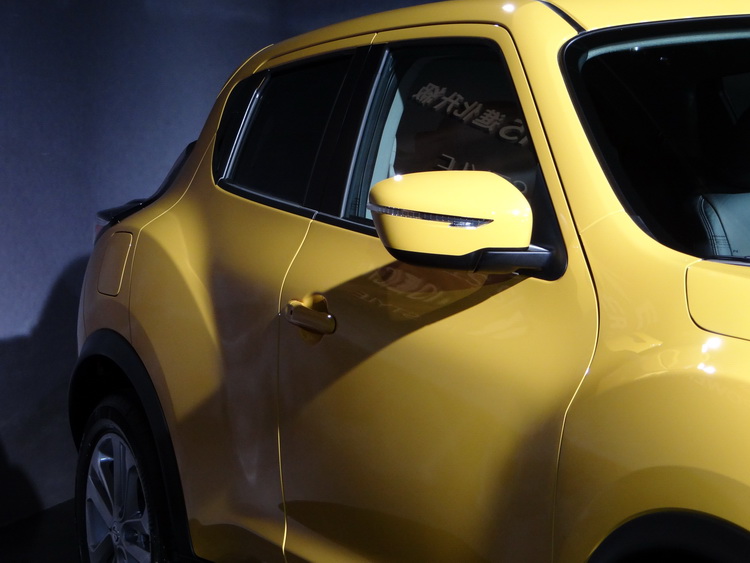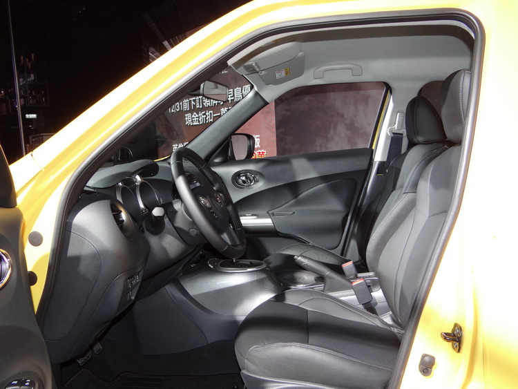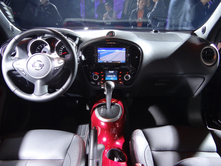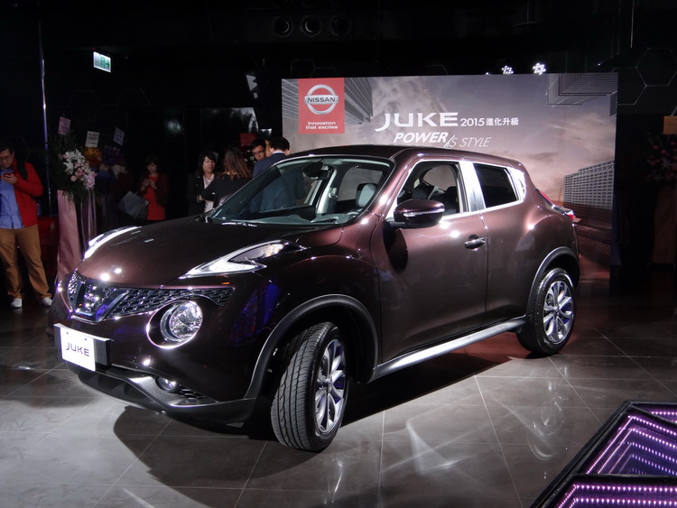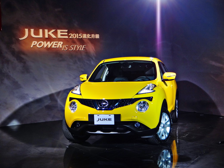 2015年式JUKE在外型上標配LED日行燈、投射式頭燈及LED方向指示燈後視鏡,前後下氣壩與侵掠馭光輔助燈造型採全新造型設計,搭配NISSAN 370Z迴力鏢造型尾燈及各規格專屬16吋、17吋鋁圈,並導入全新熾豔黃及魅麗紫大膽車色。內裝部分,搭載7吋彩色觸控螢幕音響,除可享受導航系統及數位電視,亦支援CD/DVD、USB及MicroSD行動裝置播放。