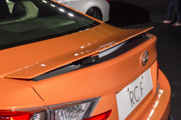 之前我們曾為大家送上RC 350 F SPORT的試駕報導,而不同於RC 350 F SPORT偏向時尚的設計,為賽道而生的RC F更重視空氣力學及性能的表現,除了針對全車前後保險桿、側裙等外觀鈑件重新設計,配備由BBS專屬打造的19吋輕量化鍛造鋁圈,並沿續IS F性能跑車的梯形四出排氣尾管外,更取汲先前參加德國紐柏林賽道24小時耐力賽事經驗,為了讓引擎蓋底下的5.0升V8引擎在高負載的環境下發揮最大的性能及散熱,在引擎蓋上方、及前葉子板後方均設計了散熱孔;而承襲自LFA超跑的主動式後導流尾翼更會在時速超過80km/h時自動升起,強化高速行駛的下壓力;此外,RC F極致版可供玩家選配CFRP碳纖維外觀套件,包含引擎蓋、車頂及尾翼均以碳纖維材質打造,減重可達9.5公斤之譜。