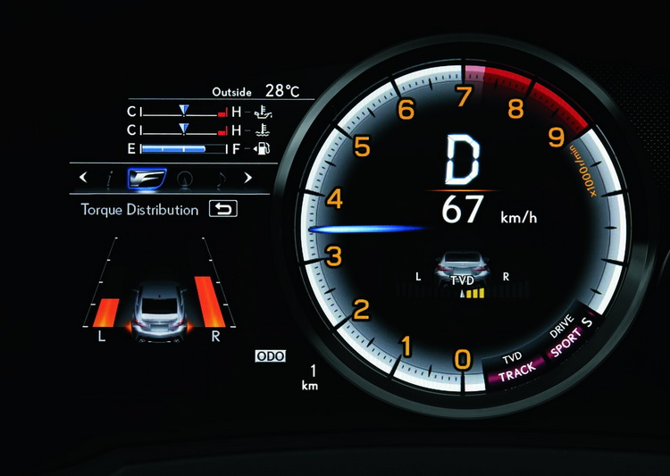 除了RC F標準配備的Torsen LSD後軸限滑差速器,RC F極致版更搭載LEXUS首創於後驅跑車的TVD主動式扭力分配差速系統,不同於傳統限滑差速器以減少動力輸出方式維持車輛行駛路線,TVD科技係來自LEXUS近年來研發Hybrid系統的心血結晶,能以每秒1,000次的頻率偵測車速、G值及輪胎速度,並在不減速的情形分配後輪扭力,即使是業餘車手也能輕鬆征服每個彎道