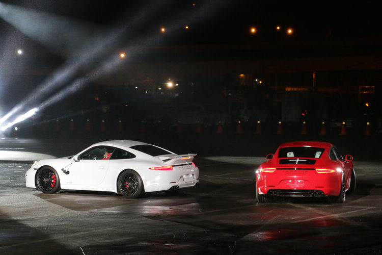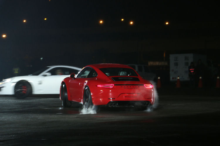 ![]() ▲總代理特邀原廠918 Spyder測試車手擔綱發表會場甩尾秀的駕駛。新報到的PORSCHE 911 GTS包括 Coupe 硬頂版和 Cabriolet 敞篷版兩種車型,並搭載後輪驅動或四輪驅動系統,共有四個車型,其中配置四驅系統的車款售價比後驅車款貴40萬元。而除了具備性能卓越的動力引擎,其運動計時套件以及可將車身高度降低10公釐的PASM主動減震系統等技術配備,也可帶來更極致的動態性能及駕駛樂趣。