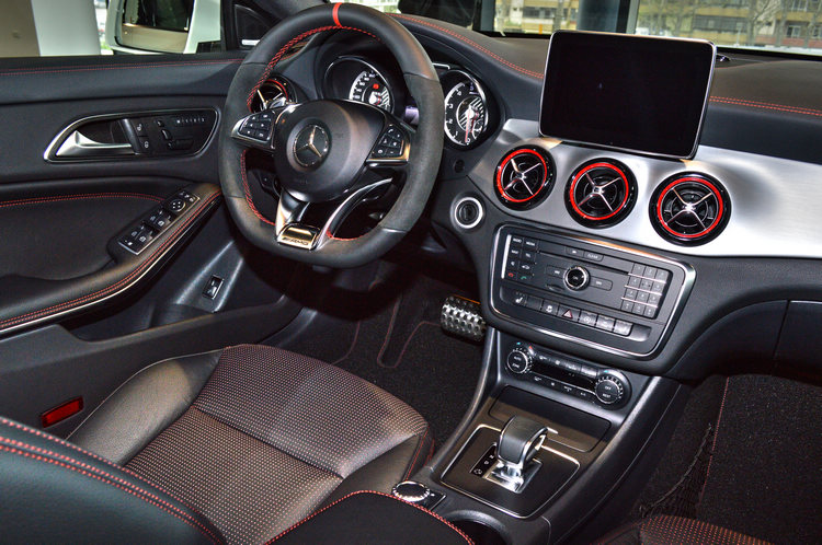 內裝及配備![]() 內裝部份延續新世代戰略小型車的格局,筒型儀錶、三幅真皮方向盤附換檔撥片,座椅配置則依車型不同有不同搭配。音響系統標配含7吋螢幕之Audio 20主機,選配則提供COMAND Online多媒體系統、Garmin MAP PILOT中文衛星導航系統與harman/kardon Logic7 環繞音響系統。CLA Shooting Brake車系標配粉塵過濾器與空氣循環切換裝置的標準型恆溫空調,CLA 250 Shooting Brake更標配全景式電動玻璃天窗。其餘如電動啟閉尾門開啟尾廂,40/60分離後座椅背,後廂容積可於495公升至1354公升間快速切換,都是這款車的特色。