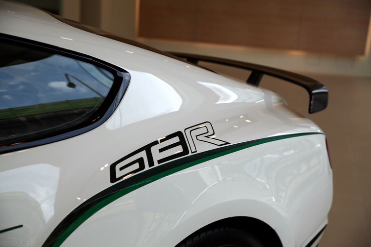 Continental GT3-R冰川白的外觀車色搭配簡潔雙綠線條,其獨特且強烈的賽車風格,曾被Wired Magazine連線雜誌評為「年度最佳車型」。霸氣十足的外觀自引擎蓋上方偌大散熱孔,一路延伸到後方固定式碳纖維製成大型尾翼,賽車元素在每處細節熠熠生輝。