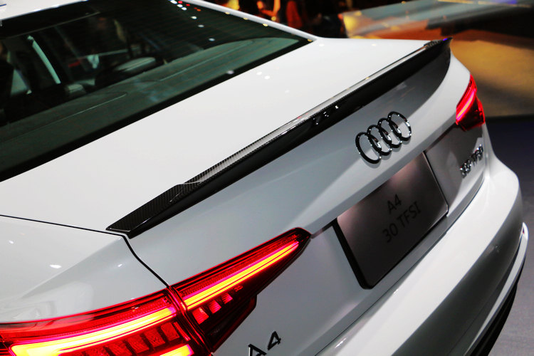 動力編成技術重點![]() ▲入門款首次搭載排氣量僅1.4升的汽油渦輪引擎,動力表現卻超越舊款1.8升車型。台灣奧迪初期導入國內銷售的車系編成,涵蓋了30 TFSI、40 TFSI和45 TFSI quattro等三款車型,其中汽油動力編成在動力方面提升達25%的水準,不過油耗數據卻同步降低21%。入門車型A4 / A4 Avant 30 TFSI,是A4車系首次搭載1.4 TFSI渦輪增壓汽油動力,動力可輸出150hp / 5,000~5,600rpm的最大馬力及25.5kgm / 1,500~3,500rpm的最大扭力,整體性能表現不僅更優於前一代A4 25 TFSI入門車型所搭載的1.8 TFSI引擎, 油耗表現也更為提升,其0-100km/h加速需耗時8.5秒完成,Avant車型為8.9秒,極速則同步達到210km的水準。 ![]() ▲原廠提供多樣化的配備選擇,包括碳纖式樣的尾翼。