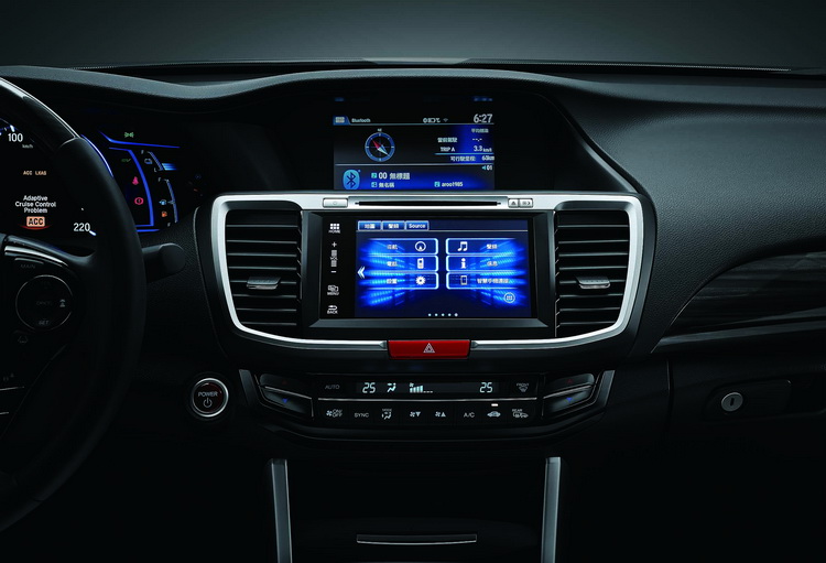 ![]() Accord HYBRID內外裝大幅進化,外型承襲家族的飛翼式車頭造型,結合先進科技的LED頭燈,搭配由前葉子板順著車門延伸至車尾燈、一氣呵成的車身立體雙腰線設計,及動感的空氣力學擾流尾翼及LED導光型後尾燈組點綴為其主要特徵。車內強調「瞬間辨識」、「直覺操作」的介面設計,包括專屬HYBRID專用儀表、i-MID 8吋智慧型多功能資訊系統、多功能7.7吋觸控導航主機。內裝追求簡約高質感風格,應用飾板、皮革材質與縫線式樣合組散發低調內斂,尤其特別強化車室寧靜工程,提升乘坐舒適度。