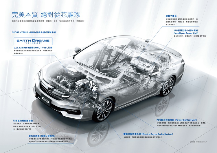 HONDA Taiwan於9月30日發表全新旗艦房車 HONDA Accord HYBRID,以日本原裝進口車款之姿,首度導入多項HONDA最新頂尖安全、性能技術,包括以「Earth Dreams Technology」次世代驅動技術群、全新展開的油電混合系統「Sport Hybrid i-MMD」智能多模式駕駛系統,可達到比小型車更低的23.7km/L平均油耗,以及215ps最大綜效馬力,實現燃油經濟與暢快奔馳並立的雙重目標;更以「Safety for Everyone」為目標,導入多項革新的主、被動安全系統,其中「HONDA SENSING智慧安全主動防護系統」,為HONDA集結先進科技、全新開發,及輔助安全駕駛的主動安全系統,可全方位的提升乘駕、行人及周邊車輛的行駛安全。