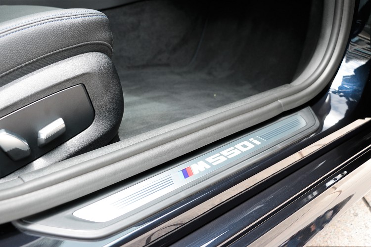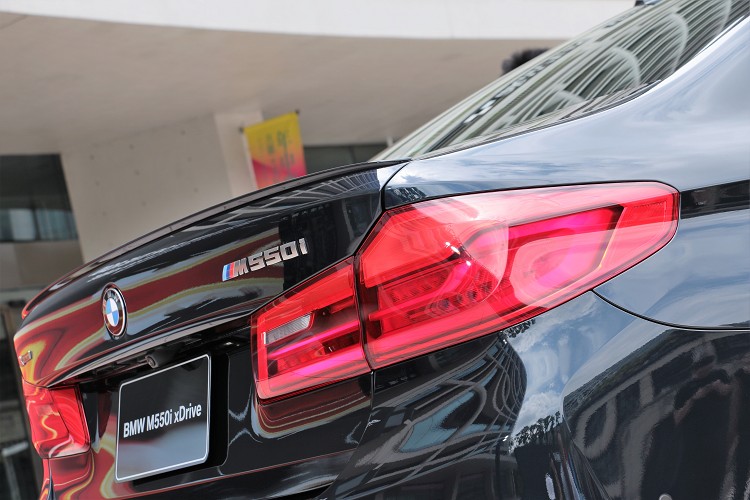 M Performance專屬識別第一印象是決定成敗的重要關鍵,全新BMW M550i xDrive搭載M款空力套件、M款後擾流尾翼、M款煞車套件,並以專屬的M Performance霧黑鍍鈰材質勾勒前保桿進氣壩、雙腎型水箱護罩外框、後視鏡蓋、車側導流氣孔(Air Breathers)等部位。黑色高光澤窗框及同樣採用黑色高光澤材質的雙邊雙出矩形排氣尾管替全新BMW M550i xDrive增添不少動感元素,搭配20吋M款雙輻式輪圈與M車側銘牌,強調M Performance凌駕對手的運動本能,進而展現激情十足的熱血性格。