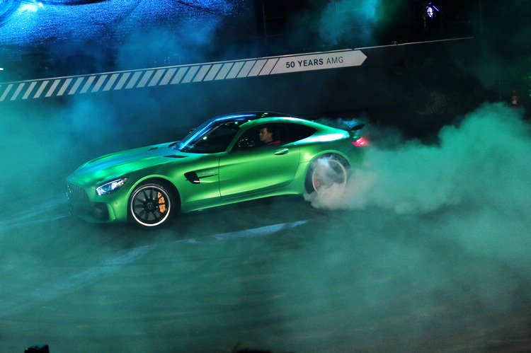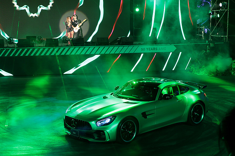 台灣賓士7/25晚間在台北舉辦AMG 50週年盛典,在歌手張惠妹引吭同時,AMG旗下43/45/63家族車款於現場進行動態展演,同場並發表曾創下紐伯林北環賽道前置後驅量產跑車最快圈速的Mercedes-AMG GT R。AMG GT R號稱為該廠有史以來最接近賽車的量產車,為空氣力學工程師與造型設計師緊密合作結果下的成果,台灣這次獲得多輛車的配額,建議售價則為新台幣1,038萬起。
