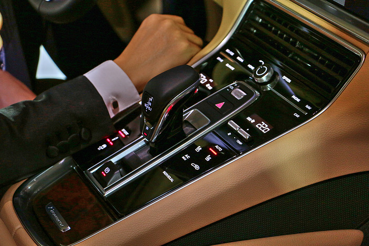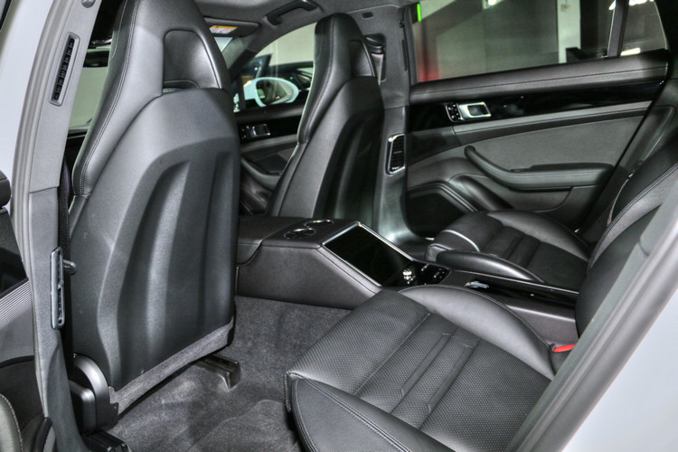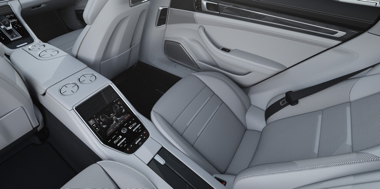 Executive 車型左右兩側門檻鑲嵌銀色高亮澤飾條,與前葉子板的排氣口飾條相互輝映。前側進氣口上也同樣搭配銀色高亮澤的飾條。透明的全景式玻璃天窗為長軸版標配,並且配備三氣室技術且包含保時捷主動式懸載系統 (PASM) 的自主調整氣壓式懸載系統。