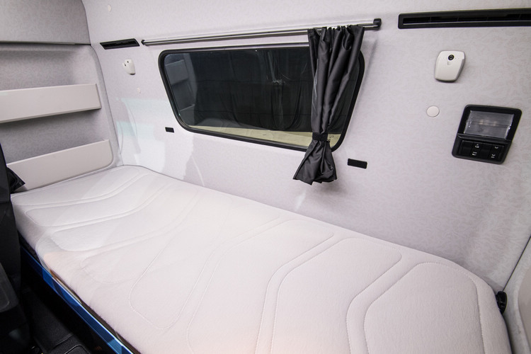 ![]() Actros車系提供平頂、高頂的座艙配置,以更高的駕駛位置提供更優異的駕駛視野,引擎通道僅有17mm,車內空間更寬敞,有利於人員在車內移動。並提供Grammer座椅和七區冷成形泡沫乳膠床墊,加上多樣化的儲存空間,提昇用車的便利性。