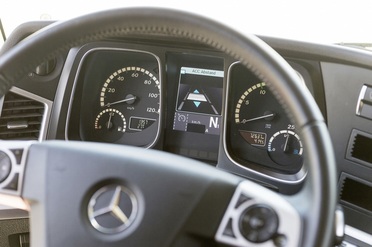 ![]() 安全科技是Actros的另一個亮點,針對煞車導入了EBS電子煞車系統,搭配防鎖死煞車、加速防滑科技、斜坡輔助科技、煞車力道輔助、荷重感應煞車等技術,引擎排氣煞車也提昇至最多達400kW,整體制動力進步25%以上。
