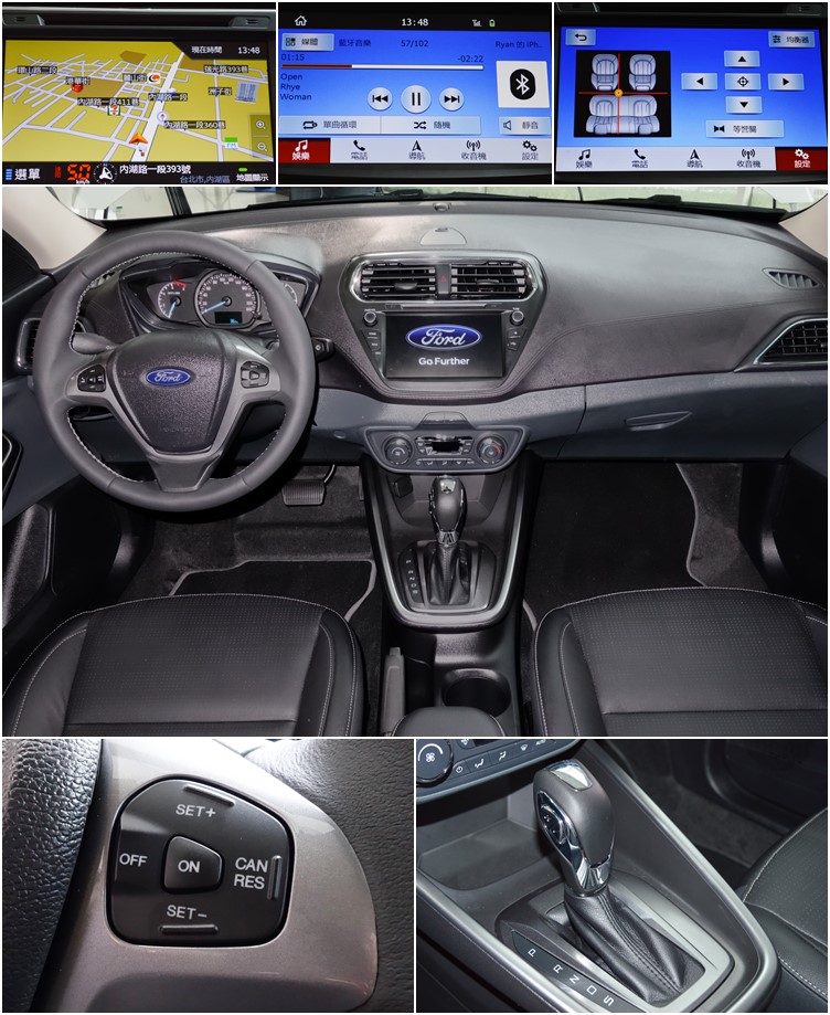 ![]() ▲時尚型配置全車皮椅,內裝塑膠感相當重,整體質感雖然只是一般水準,不過行李廂卻達到467L,車內也提供足夠的置物空間設計,搭配後座翻折設計,已經足敷小家庭乘坐或是通勤代步的需求。Escort軸距2687mm,車寬也有1825mm,對於乘坐空間和後座空間相當有利,行李廂達到467L;車內也提供基本的置物需求,包括中央扶手內置物處和前後車門的置物格,前後座位均有兩套杯座。 ![]() ▲六速手自排採用與Fiesta相同之按鍵式換檔方式,車內不少配件也有其他車型的影子,至於整合影音系統提供的功能則相當完整。